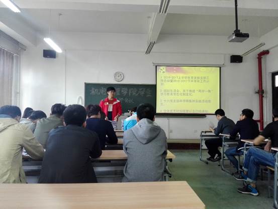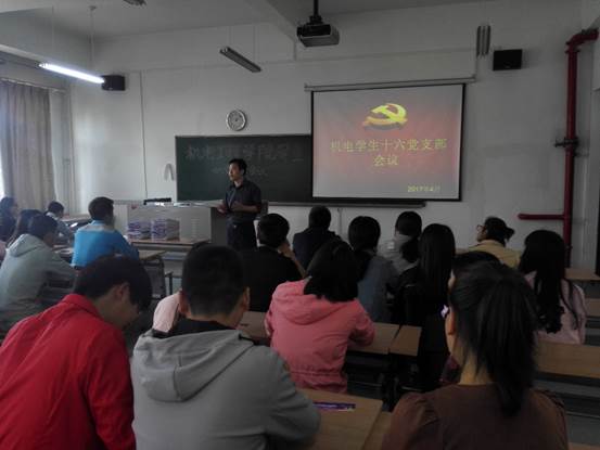学生第十六党支部的党支部书记张晖同志和全体学生党员,大会由党支部副书记何周旋同志主持。