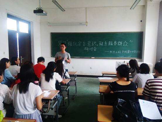 第十四党支部在工二-501召开主题为“强化宗旨意识,联系服务群众”专题研讨会,会议由黄彦军同志主讲。