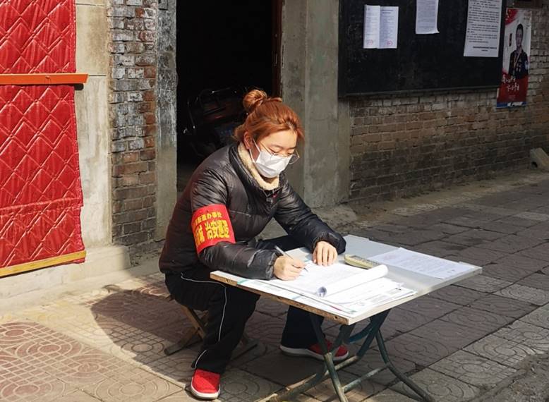 学生第七党支部预备党员王博主动前往执勤点,为村里执勤工作人员赠送慰问品,并自愿参加执勤站岗,协助村干部统计村内外出务工人员。