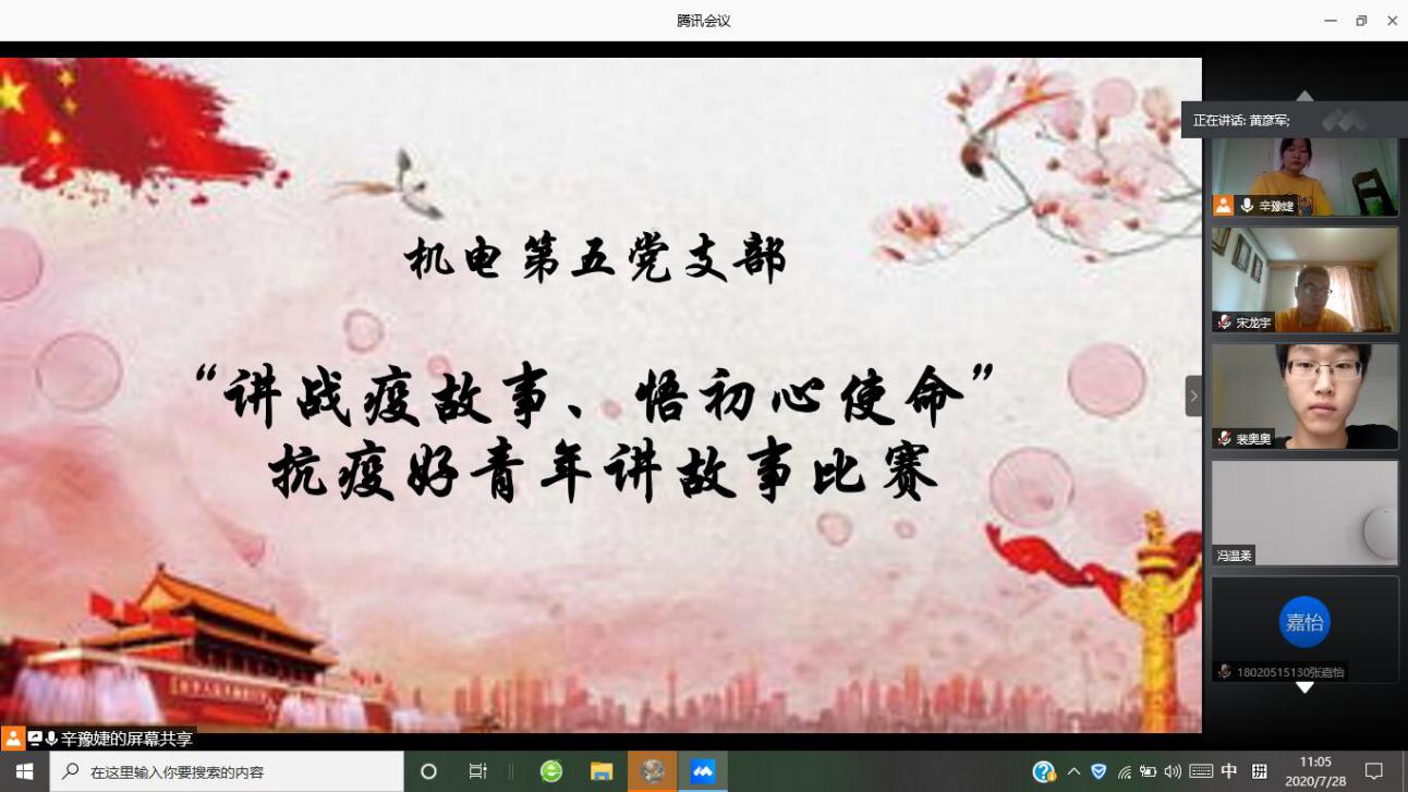 学生第五党支部于2020年7月28日通过“腾讯会议”平台召开了“讲抗疫故事,悟初心使命专题组织生活会。会议由成人短剧
