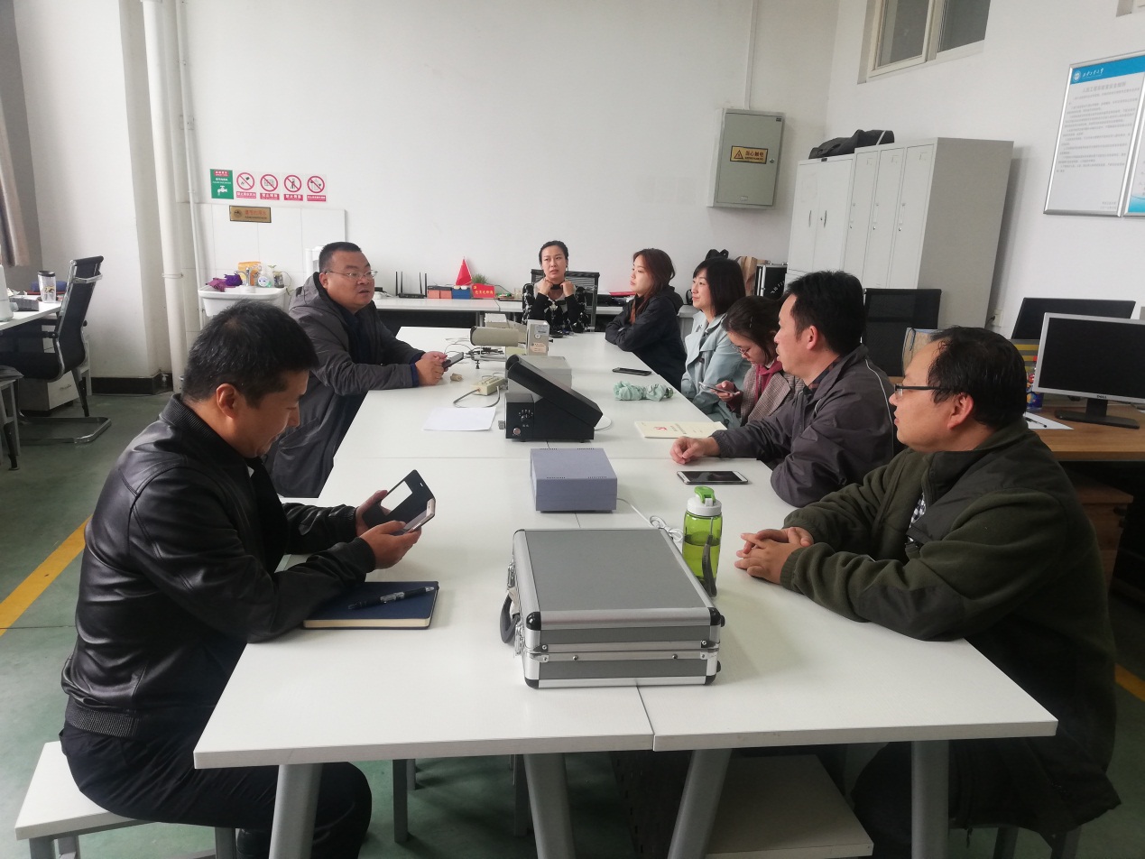 袁艳与智能制造与工业工程系主任田军委及其他党员在一起,对党支部工作如何更好的促进教学、科研、团队等方面工作进行了探讨,大家集思广益,提出来了一些可行的思路与方案。
