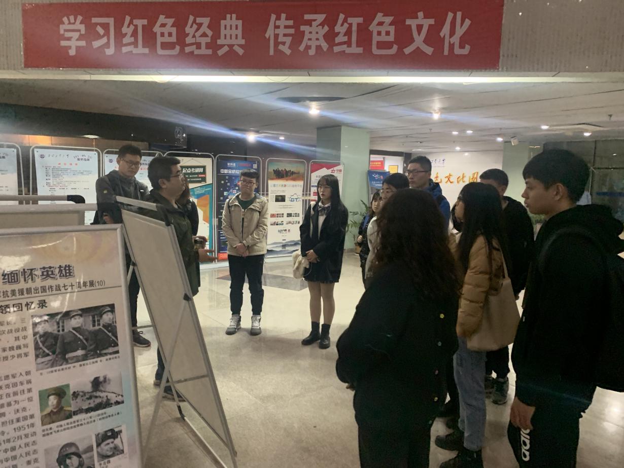 学生第七党支部全体学生党员在支部书记唐雅莉老师的带领下,于2020年11月12日下午前往我校图书馆参观“纪念抗美援朝出国作战七十周年图片展”。