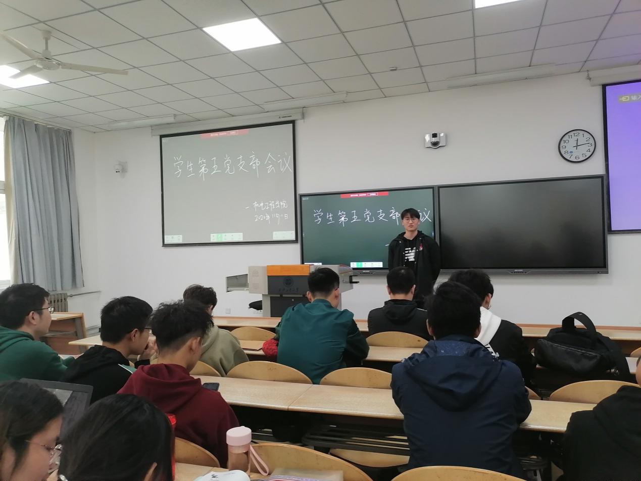 学生第五党支部在教2-108召开接收预备党员支部会议。此次会议由支部副书记王聪聪同志主持,支部全体党员以及要接受的预备党员参加。