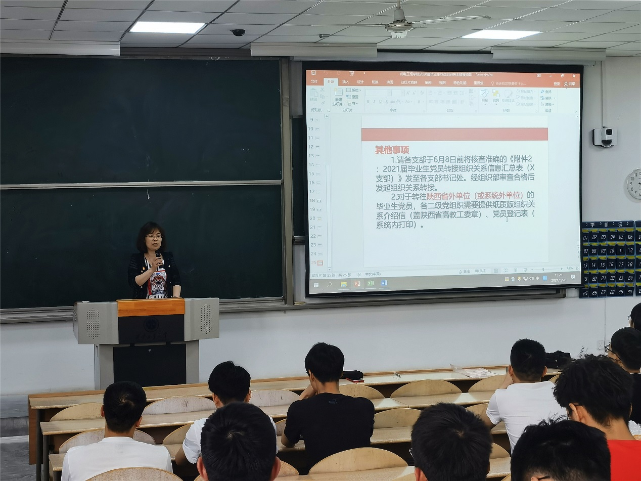 学院学生党总支副书记薛鹏老师从毕业生党员组织关系的类型、毕业生党员组织关系转移程序、毕业生党员组织关系转移工作要求及转接过程中的一些注意事项进行了详细说明,重点强调了党组织关系转接工作的严格性和重要性,他表示,组织关系是党员对基层党组织的隶属关系,严肃、及时、妥善办理组织关系转接手续是党的纪律的要求,也是党员意识和责任心的体现。团委书记王晶老师就团员毕业生团关系转接进行了动员和部署,强调了按时完成转接的重要性,要求全体毕业生党员勿忘团员身份,带领身边的非党员团员做好团关系的转接。然后,学院团委组织部长张清华同学通过现场为与会毕业生党员现场演示智慧团建系统实操技巧。