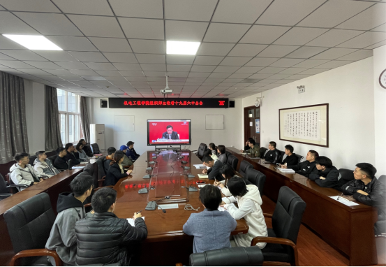 在工2—310组织师生观看十九届六中全会。中国共产党第十九届中央委员会第六次全体会议,于2021年11月8日至11日在北京召开。中央委员会总书记习近平代表中央政治局向全会作工作报告,并就《中共中央关于党的百年奋斗重大成就和历史经验的决议(讨论稿)》向全会作了说明。