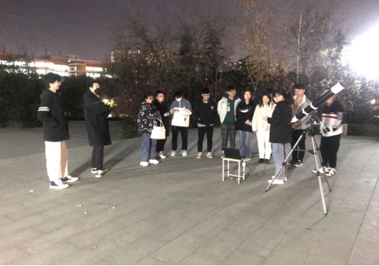 学生第七党支部联合我校星汉天文社在博雅亭举行了天文观测活动,并对月球、木星和土星进行观测以及讲解。