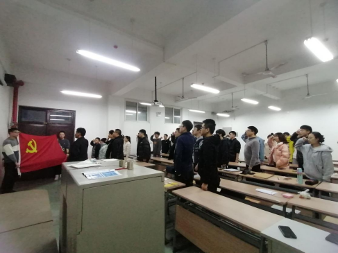 学生第六党支部于工二-503召开以“重温入党誓词,牢记初心使命”为主题的党日活动。本次活动由支部书记雷世舟主持,学生第六党支部全体成员参加。