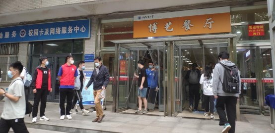 学生第七党支部成员利用课余时间积极参与志愿活动,发挥党员的模范带头作用。学校虽然已经解封,但疫情防控不能松懈。校园是人员密集场所,日常监管更要全面、彻底,不留死角。此次志愿活动中,支部的8名成员分别在学校餐厅各大门、电梯口执勤,严格遵守学校的疫情防控规定,时刻提醒同学们佩戴好口罩,不扎堆、不聚集、有序排队、文明就餐。引导同学们养成良好的习惯,做好个人防护。