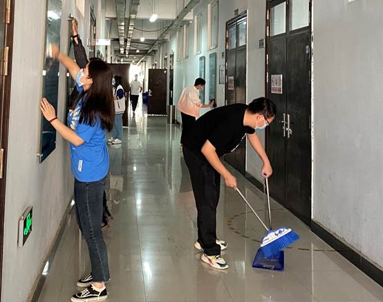办公楼楼道地面及学院展板的卫生问题。首先参与本次大扫除活动的广大同学在支部委员会的协调下分为不同的任务小组,以极大的热情投入到本次活动中。然后根据各自的任务领取不同的卫生工具,认真打扫楼道卫生,扫地拖地,擦洗楼道内的学院展板。