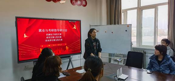 为做好2023届毕业生考研与就业指导工作,强化党建引领促就业,引导学生构建正确的就业观、考研观及发展观,发挥学生党支部和学生党员示范引领作用。2022年11月9日,机械电子系党支部、研究生第七党支部和机电学生第五党支部联合举办了就业与考研指导研讨会。会议由学生第五党支部书记王晶同志主持,各支部在校同志、机械电子系专业负责人王丽老师参加本次研讨会。