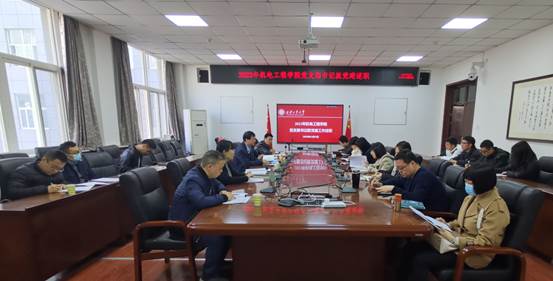 召开2022年党支部书记抓党建述职大会,党委书记路金龙主持会议,党委委员、支部书记及教师代表制造系副教授闫正虎参加。
