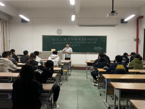 研究生第四党支部在工二—502开展学习贯彻习近平新时代中国特色社会主义思想主题教育大会。研究生第四党支部全体党员参加会议,会议由研究生第四党支部书记刘强主持。