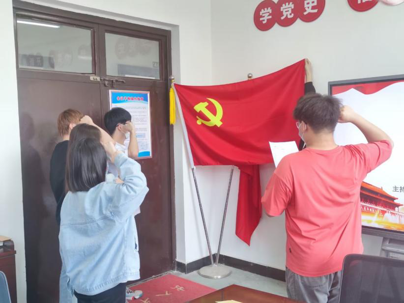 学生第七党支部同意接收王博龙等四名同志为中共正式党员。随后,全体党员面对党旗庄严宣誓,重温入党誓词。