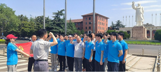 洛阳实习临时党支部组织党员在洛阳中国一拖集团有限公司前的毛主席雕像下开展重温入党誓词的党日活动。参加活动的有成人短剧