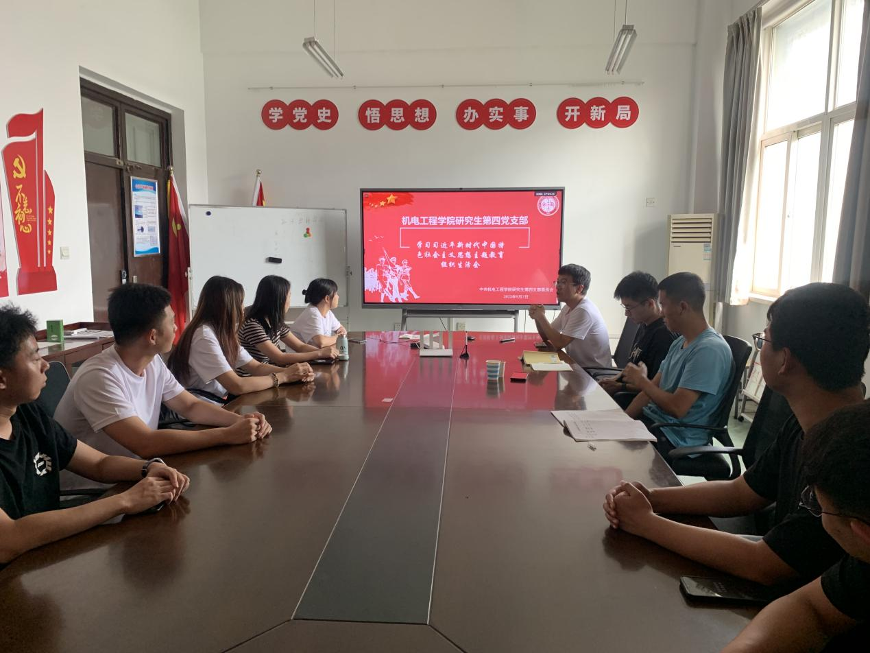 研究生第四党支部在工二405开展学习贯彻习近平新时代中国特色社会主义思想主题教育专题组织生活会,会议由支部书记刘强主持,研究生第四党支部全体党员参加。