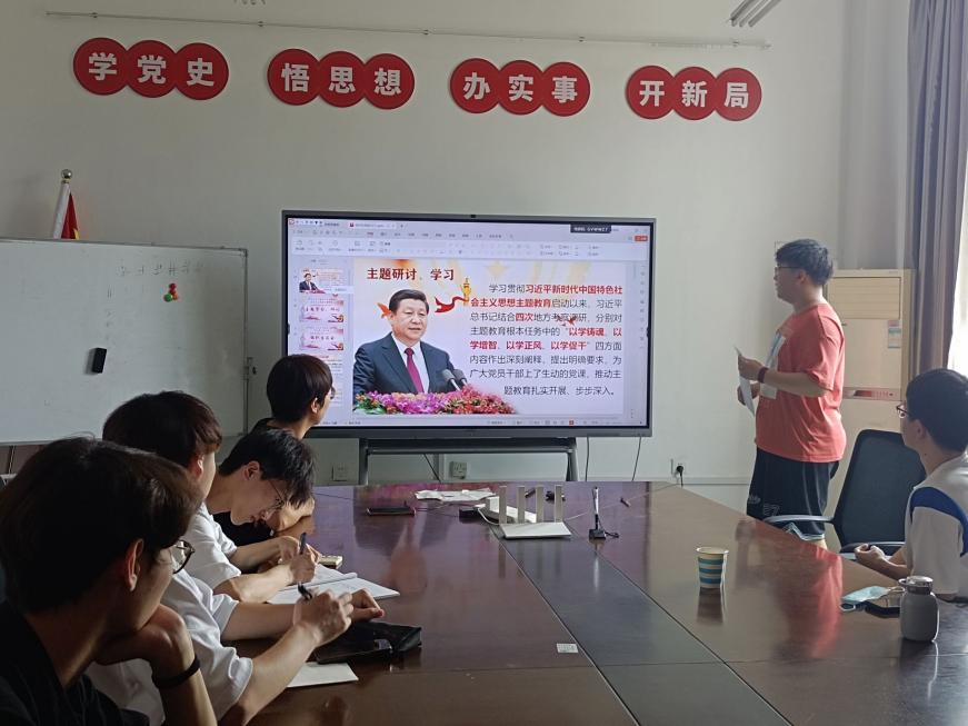学生第七党支部在工二-405开展习近平新时代中国特色社会主义思想学习研讨会,会议由支部书记唐雅莉主持。