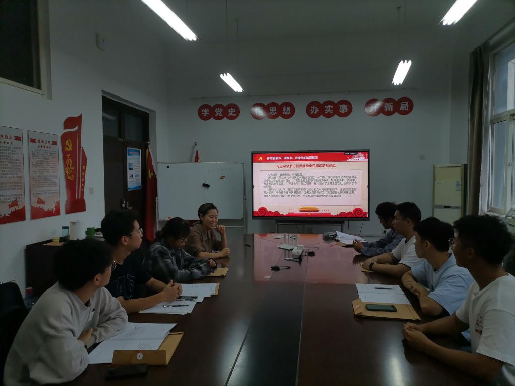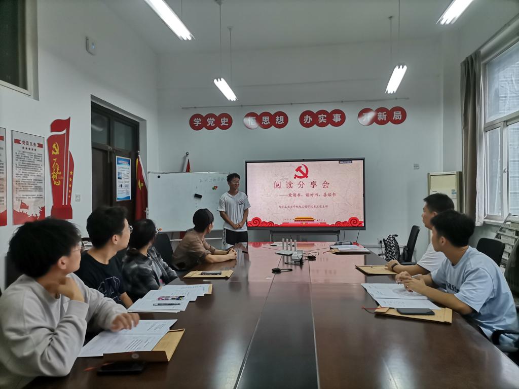 学生第三党支部于工二-405开展了以“爱读书、读好书、善读书”为主题的阅读分享会。会议由支部书记马芳荣主持,全体支部成员参加会议。