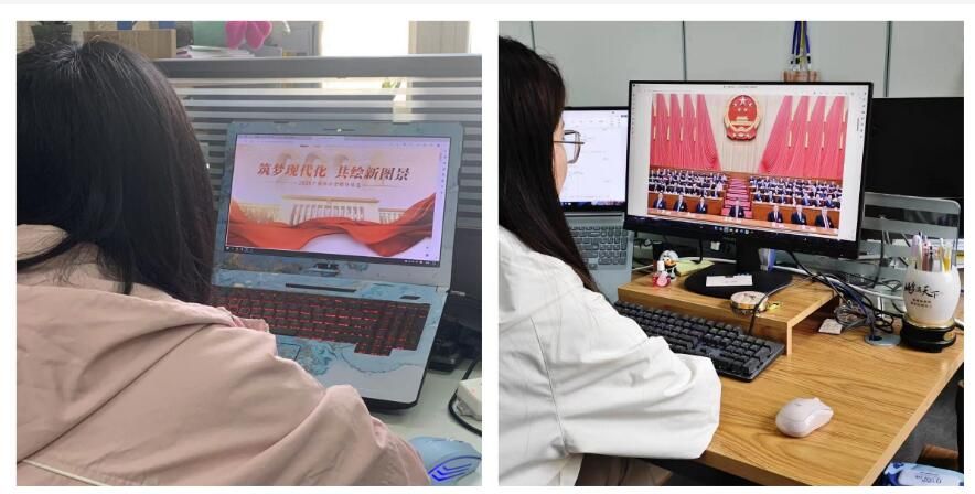 学院党委组织各班级、党支部、团支部、各系师生通过线上、线下等形式,收听收看全国“两会”开幕会直播盛况,号召广大师生把强国建设、民族复兴融入自身学习工作中,积极响应党的号召,肩负时代重任,推进科技自立自强。