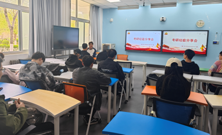 在分享会上,学长学姐们首先强调了考研的重要性和意义,鼓励同学们坚定考研的信心和决心。随后他们结合自身考研的经验、复习方法、心得体会等内容进行分享和交流,详细介绍了考研的备考流程和注意事项,包括如何制定合理的学习计划、如何选择参考书籍和资料、如何提高学习效率等。张怡勃表示,初试复习阶段是整个阶段的最重要的时期,根据自己各科的优势和弱势,安排好各科的复习时间和规划。英语、数学是各科考试最重要的科目之一,一定要投入大量时间好好复习。此外,他们还就考研过程中的心态调整、复试准备等方面给出了实用的建议。在互动环节,大三同学们积极提问,与学长学姐们进行了深入的交流和探讨。
