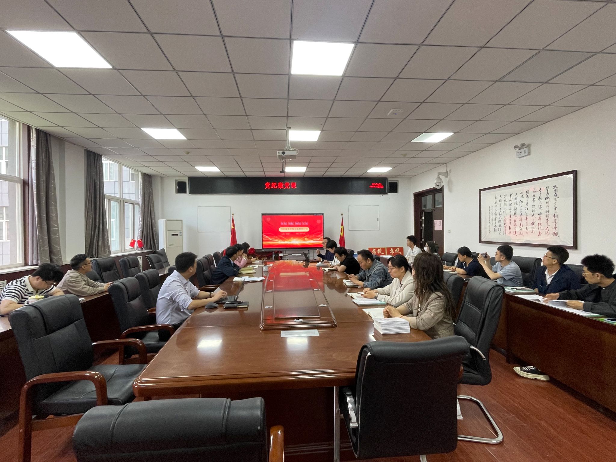召开学院党委书记讲党课活动,以“用党规党纪矫正思想和行动”为题。学院党委书记程新峰主讲,学院党委委员、党支部书记参加。