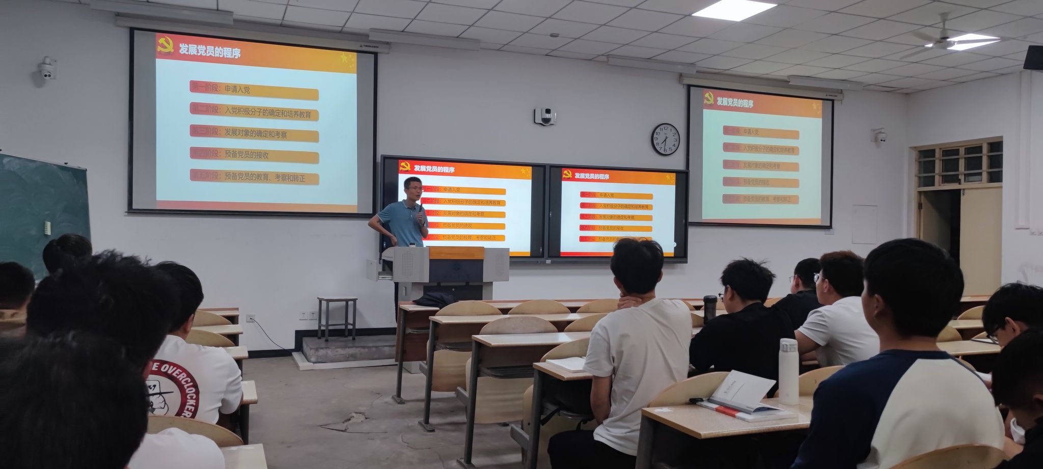 第68期入党积极分子培训班于教2-110开课。本次党课的主题是“共产党员的条件”,由学校党委组织部赵伟奇主讲。