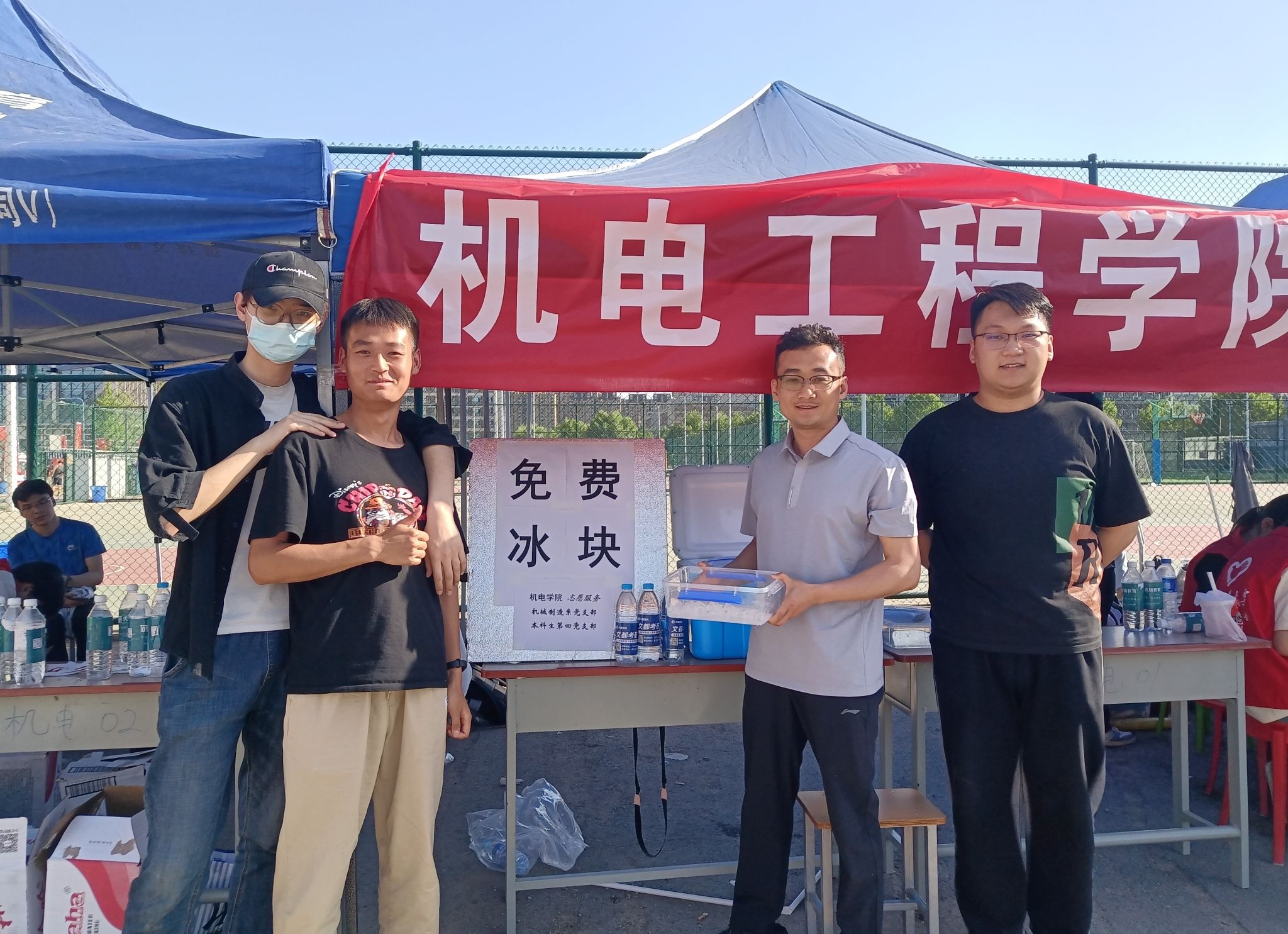 2024年春季运动会在一片热烈而又充满活力的气氛中拉开帷幕。为充分发挥党员的先锋模范作用,助力运动会后勤保障工作,以学院党委“五个一”安排为契机,机械制造系党支部和本科生第四党支部联合开展“运动会送清凉”志愿活动。