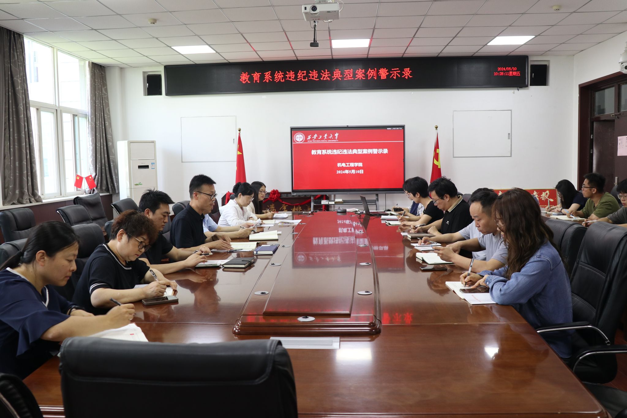 党委于近日召开《教育系统违纪违法典型案例警示录》专题学习,会议由学院党委书记程新峰主持,学院党委委员、理论中心组成员、党支部书记参会。