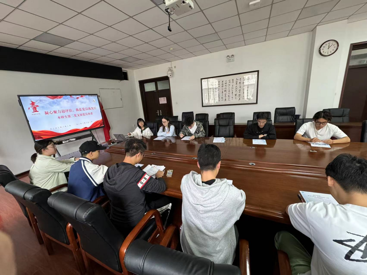 学生第二党支部在工2-310开展“党的伟大精神”主题学习,全体党员参加。