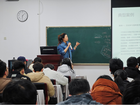 培训中,高珊老师立足学生骨干工作实际需求,结合自身多年学生工作经验,以生动鲜活的工作案例、通俗易懂的语言表达,围绕“沟通技巧”与“学生骨干工作艺术”两大核心主题展开深度分享。在沟通技巧板块,高老师系统梳理了沟通的核心原则,细致讲解了与同学日常交流、向老师汇报工作、组织协调活动等不同场景下的沟通策略,重点强调了“倾听的艺术”与“表达的逻辑”,引导骨干们在沟通中学会换位思考、真诚共情,切实提升沟通的有效性与针对性;在学生骨干工作艺术板块,高老师结合具体工作场景,从明确自身定位、树立服务意识、统筹工作任务、协调团队关系、处理突发问题等多个维度给出实用方法,鼓励骨干们在工作中既要坚守原则底线,又要注重灵活变通,以科学方法提升工作效率,以责任担当践行服务宗旨。
