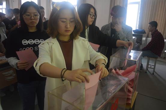 党委书记赵玉厚老师致开幕词。核实到场正式代表人数、拆封选票封袋、分发选票、宣读选举办法,前期准备严格按照选举流程,环环相扣。随后,唐雅莉老师宣读参选代表个人简历并宣布选举正式开始:填写选票、检查票箱、当众点票,整个过程透明公开,保证本次投票公平公正。各位学代表们填写选票时深思熟虑、仔细斟酌,在综合候选人的各方面表现后投下自己宝贵的一票,认真履行了自己的选举权与被选举权。最后由总监票人公布选举计票结果,宣读所有候选人得票,主持人宣布最后当选结果:乔璐等26位代表当选为共青团成人短剧