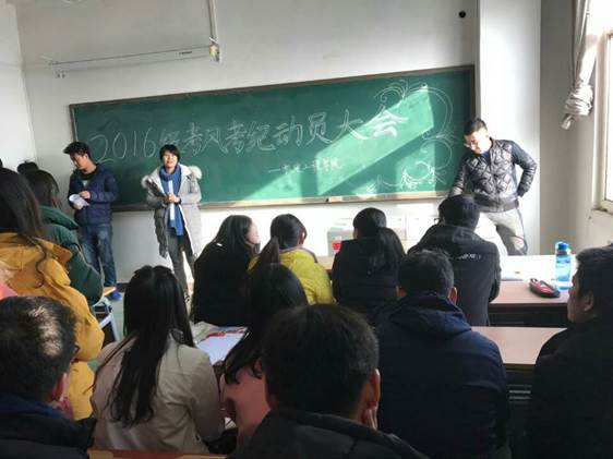 通过本次大会,对2016级迎接期末考试的考风考纪做了良好的动员,同时,对在校的剩余时间做了良好的安排,在对学生平安、高效向寒假过渡起到了良好的作用。