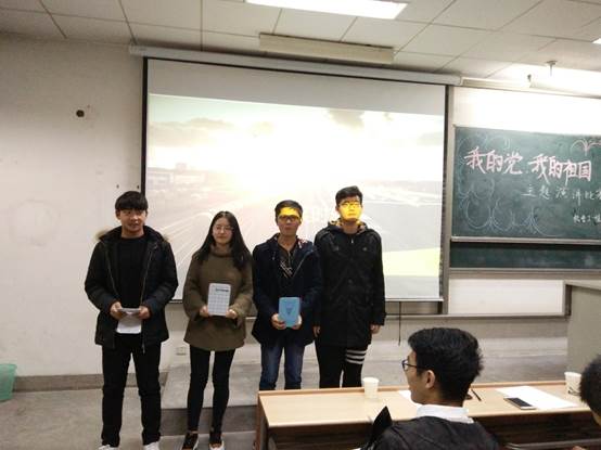 比赛伊始,主持人致开场白,并依次介绍出席嘉宾。参赛选手个个精神饱满,抱着必夺第一的决心依次走上演讲台。2号选手陈济真气势如虹,以高亢的嗓音征服了在座的所有人,赢得了众人阵阵喝彩;6号选手李林激情澎湃,凭饱满的精神让现场观众热血沸腾,掌声不绝于耳;7号选手张思郁引经据典,以社会背景为依托,讲演内容深入人心,引人深思。演比赛现场高潮迭起,各参赛选手口若悬河,慷慨激昂;终场提问紧扣十九大会议热点,现场参会成员争先抢答,场面蔚为壮观。最终,6号选手李林以出色的发挥夺得一等奖,7号选手张思郁和9号选手刘康鑫摘得二等奖,2号选手陈济真、4号选手邓卓和11号选手惠楚则以同样出彩的演讲获得三等奖,各位嘉宾为优胜者颁发荣誉证书并合影留念。