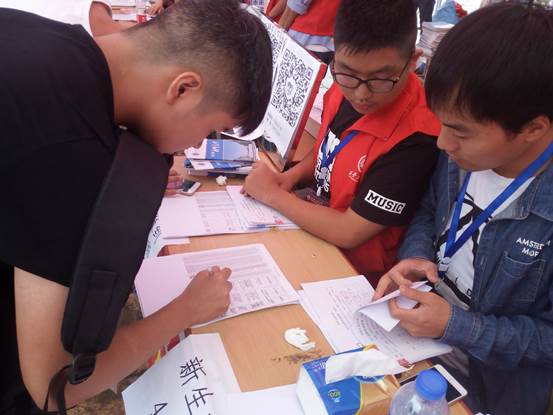 2017级硕士研究生新生办理入学报到工作;学生干部们颈戴工作牌,身穿红马甲,为每名大一新生依次介绍入学报到流程、注意事项,指导新生填写报名单信息、扫码添加新生群。所有工作人员工作态度认真,讲解耐心细致。院党委书记赵玉厚老师对新生接待工作重点关注,每日亲临现场指导工作。两天的新生报到过程中,在成人短剧