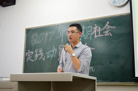大会伊始。黄彦军老师致开场白,并通过学校相关文件通知向参会人员介绍2017年暑期社会实践的详细内容,并对今年社会实践的重要项目、热点议题、政策支持等方面进行了深刻的解读。同时,黄老师还结合往年暑期社会实践所出现的问题向参会人员提出了要求:各实践队要加强安全防范措施;实践内容要主题鲜明,重点突出;要注重社会反响,加强宣传力度。院团委宣传部部长刘浩浩向参会人员重点说明了本届社会实践工作部署和安排,要求各实践队要保质保量按时完成各项工作。