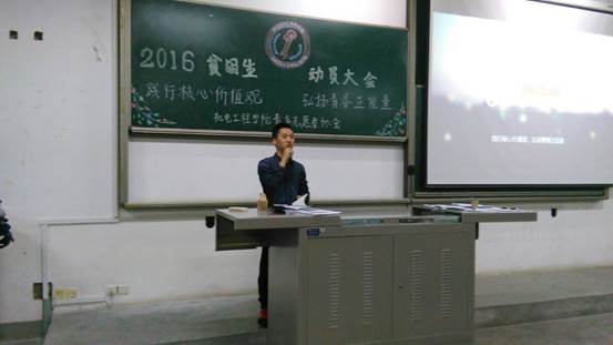 首先,青协主席魏嘉斌对受资助学生义务劳动和志愿服务活动进行了讲解,他以视频的方式展现了青协同学做义务劳动和志愿活动的场景,真切的画面深深的吸引着每个人的眼球,让在场的每一个人深深地体会着“奉献、进步、互助、友爱”的志愿者精神!接着他对上一年青协的常规工作和特色工作进行了说明,要求同学们树立积极主动、认真负责的工作态度。随后,实践部副部长赵航对志愿活动进行了介绍,他要求同学们在志愿活动中能够承担责任,实现人生价值。