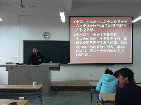 迎评工作安排做了进一步的部署,围绕教师的工作状态、考勤制度、实验室建设、课堂秩序、教风整改等方面进行了重点强调。最后,赵玉厚书记结合“两学一做”重要内容,组织学习了十八届六中全会的主要内容和议题。