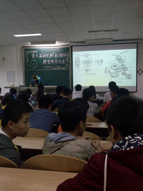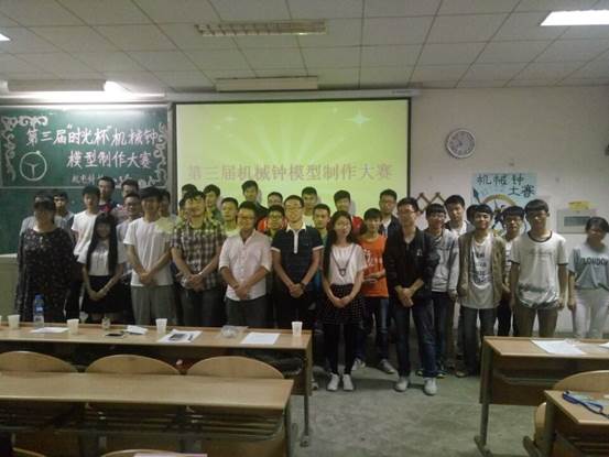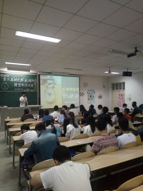 “科协”在教2-202成功举办了第三届“时光杯”机械钟模型制作大赛。莅临本次大赛的嘉宾有校科协主席申玺学长、机电科协主席何周旋学长及其他学院科协的相关负责同学。