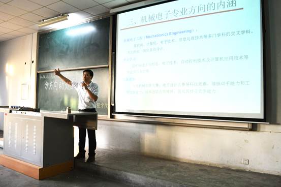 在宣讲会上,各位老师依据自己所从事的专业方向分模块为同学们进行讲解,同时为同学们提供了更加全面和具体的指导意见。刘军强老师基于机械制造方向,全面深刻的阐述了现代机械制造的应用前景,介绍了该专业的师资力量及其专业课程要求,为学生的就业方向予以指引。在活跃的现场气氛下,付雷杰老师把握机械设计专业特色,生动风趣地向大家展示了设计领域的魅力,他又以机械制造作为对比,深化学生对专业分流的认知,也易于学生的兴趣和个性发展。王洪喜老师则是基于对现代新兴高科技发展的展望,着重每一个专业细节以及发展特色,极大促进了学生对自己兴趣的认知,同学们热情高涨,与老师进行了积极的互动交流。