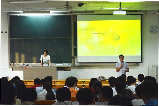 首先,黄彦军老师从学习方法的改进、学习经验的交流、学习态度的端正等方面对同学们作了具体要求,字里行间流露出了对同学们的期待,在座的每位同学陷入了沉思中。紧接着,董楠同学从个人的学习情况和参加社团活动两个方面分享了自己的经验和体会,使同学们受益匪浅。