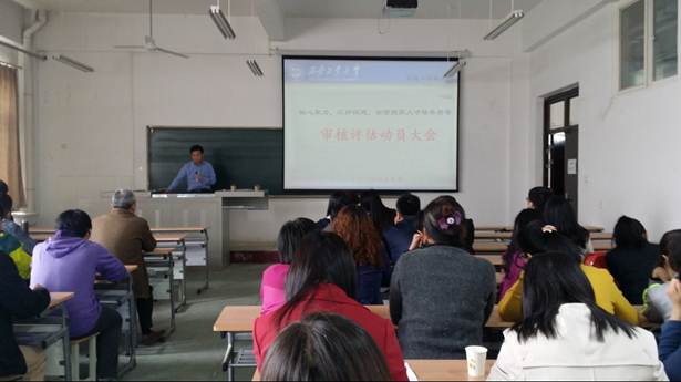 于2016年4月8日下午13:40在工2-504教室召开审核评估动员大会,全院教师参加了会议。