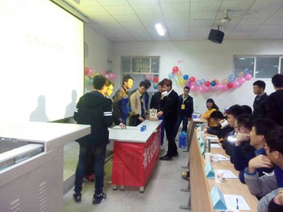 经过各组参赛选手和科协干事们的精心准备,加农炮制作大赛于2014年11月27日晚6:30在教2-201如期举行。出席嘉宾有13级导员薛鹏老师、机械电子系主任王洪喜教授以及各学院科协负责人。