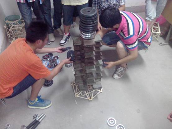 赛前,主持人首先向同学们介绍到场嘉宾及评委并详细地讲解比赛规则。决赛分为PPT讲解、承重测试、知识问答三个环节。参赛选手分别从创作灵感及力学分析等方面对自己的作品作了精彩的讲解,同学们的设计理念各有千秋,结构分析不相上下,独具匠心的解说不时博得现场阵阵掌声。接着,评委针对选手作品特点对其结构做出了专业性的分析与点评,并为选手提出了一些指导性的意见。