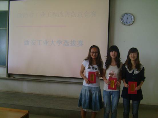 工业工程改善创意竞赛是面向大学生的创新实践活动,旨在加深大学生对工业工程相关专业知识的理解、增强发现问题和解决问题的能力、培养创新能力,并为创新型人才的培养打好坚实基础。在2011年5月28日进行的“陕西省第二届工业工程改善创意竞赛”决赛暨颁奖仪式上,西安工大选送的4件作品共荣获一等奖1项、二等奖1项、三等奖2项,位居同类院校前列。