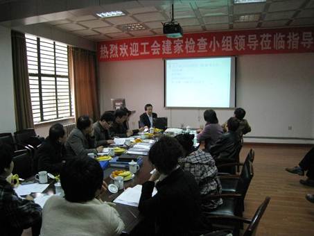 工会主席朱育权代表学院工会从六个方面向专家组进行了工作汇报。一、党政重视工会工作,党政工关系和谐;二、积极参与学院的民主管理、先进评选与职工考核;三切实维护教职工合法权益;四、积极开展“三育人”工作;五、开展丰富多彩的教职工群体活动;六、重视工会自身建设。