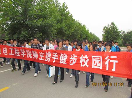 上午11时20分,健步行队伍从未央校区教学楼西侧出发,先后经过主体教学楼、学生宿舍、学生食堂、图书馆,行政楼。在活动过程中,张忠书记深入新生队伍,为同学们详细讲解学校的各项设施、交流思想,使新生们对校园有更加直观的认识,帮助新生更快地熟悉校园,了解和适应大学生活,能够很快地融入大学校园生活。