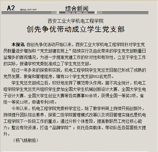 创先争优带动成立学生党支部》为题,报道我校成人短剧