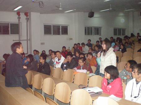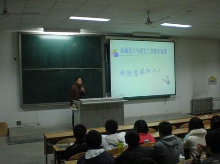 2009级“机械设计与研发工程师实验班”班主任薛鹏老师。宣讲会吸引了全校多个工科院系近百名有志于参加“机械设计与研发工程师实验班”的学子前来参与,气氛热情而激昂。