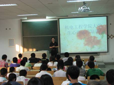 首先,张晖老师给大家划分了人生的几个重要阶段并切实的结合生活感受讲了一些生动的事例,随之带领大家进入了今天的主题。张老师用亲和的演讲结合精彩的幻灯片向大家阐述了大学生心理健康的重要性。质朴的话语,深情的演讲,为大家解答了心中的疑惑,指点生活的迷茫。现场同学们专注听讲,不时有同学频频点头,当老师问道幸福是什么的时候又有许多同学踊跃的回答,各抒己见,表达了他们的观点。在轻松愉快的氛围中,老师结束了这次的培训。