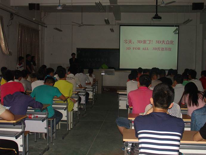 此次宣讲主要分为三部分。第一部分,科技部国家制造业信息化培训中心阴志安先生做3D相关讲解。他对3D的发展史及现代化各项技术在3D方面的应用做了系统描述。此外,还通过几段视频向观众完美的诠释了高速发展的现代科技。第二部分,往届全国3D大赛二等奖获得者吴青山分享了自己的参赛经历,还通过曾经获奖的作品向在场同学们展示了参赛所应该注意的细节,以及创新思维在作品设计中的核心价值。第三部分,成人短剧