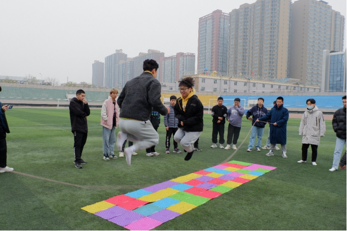 本次团建活动将娱乐与竞赛相结合,设置了“破冰游戏”、“珠行万里”、“多人多足”和“指压板跳大绳”等趣味性和协作性于一体的比赛项目,来自各班学生干部组成的5支队伍本着“友谊第一,比赛第二”的原则,针对四个项目进行比拼,在锻炼同学身心协调能力的同时,也增强了同学们的团队意识。